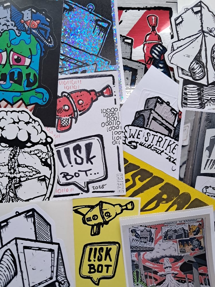 ALL 12 stickers go in the LISKBOT STICKER ALBUM.